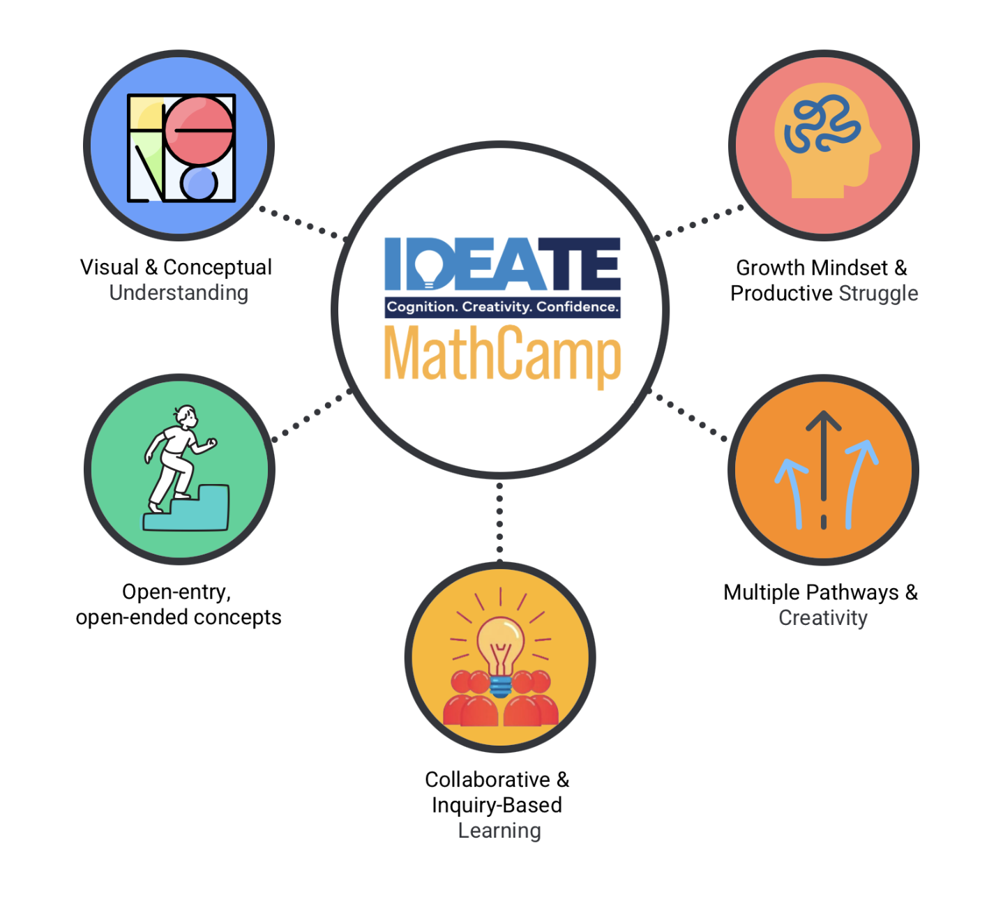 Specifically targeted to elementary school children to gain a conceptual understanding and the “whys” of math, and to middle school children as they prepare for algebra, IDEATE MathCamp is based on the YouCubed® curriculum developed by Dr. Jo Boaler and a team of educators at Stanford University.